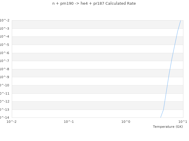 Datapoints for n + pm190 -> he4 + pr187