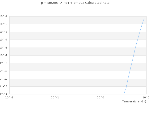 Datapoints for p + sm205 -> he4 + pm202