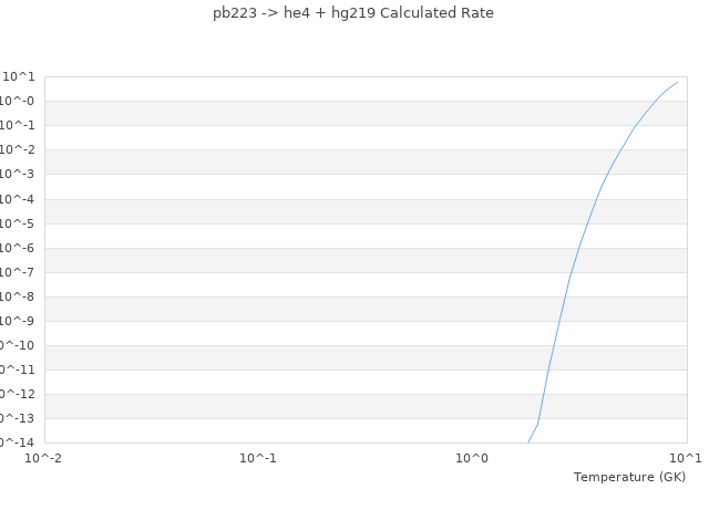 Datapoints for pb223 -> he4 + hg219